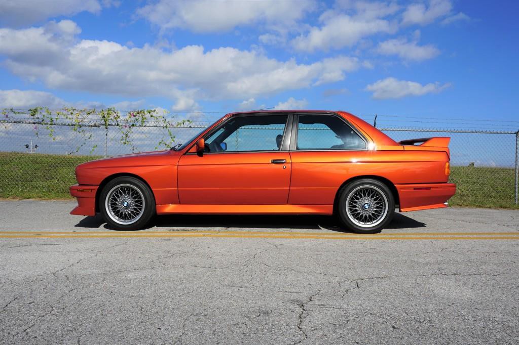 ASG is pleased to present our 1988 BMW E30 M3 1 of 1 in Valencia Orange with Black Leather Interior. 3 Owner Car. 16" Johnny Cecotto BBS Wheels.