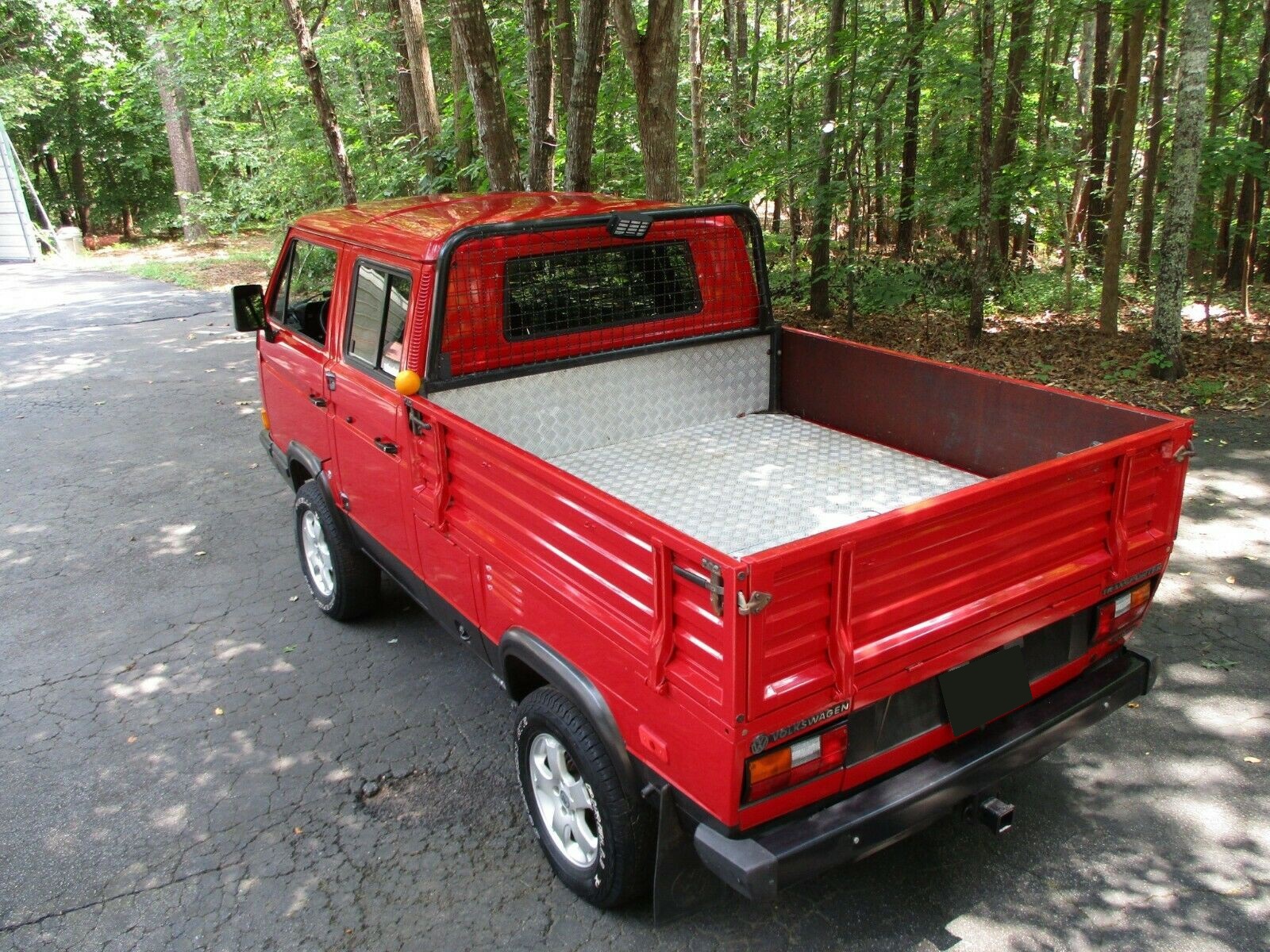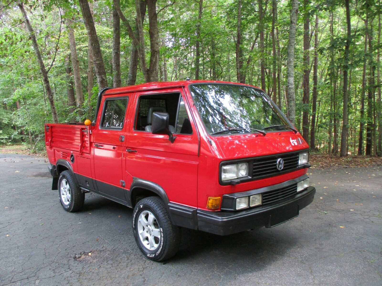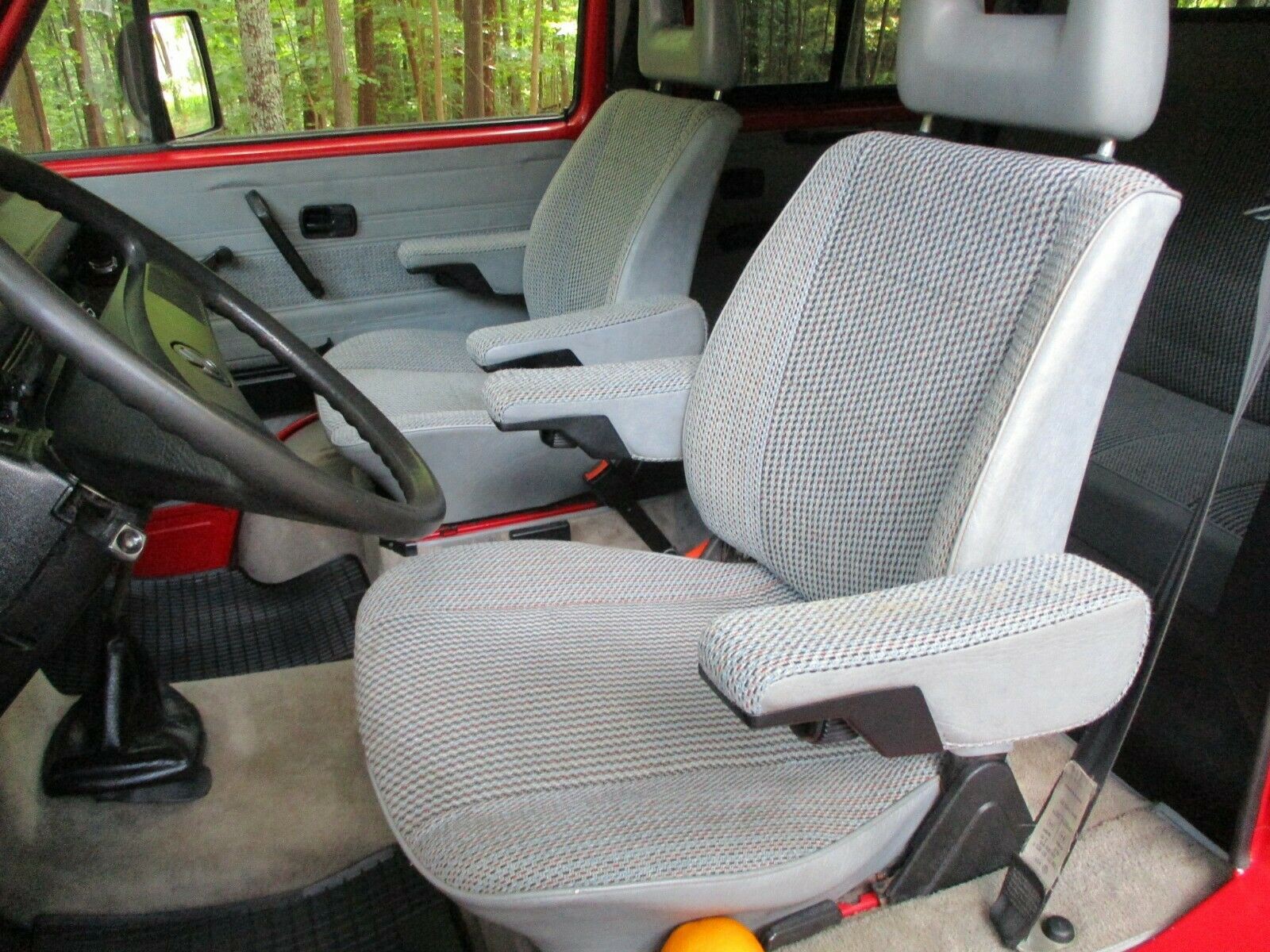 The sheet metal body panels are all in top notch rust free original condition as shown, as are the entire floor assemblys. It sports two Puch logo badges - no idea why these are on the truck but Syncro owners say that is correct. All doors open and close like new. No sag, no damage. Entire cabin is tight as a drum - like new condition.
