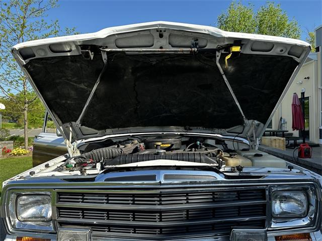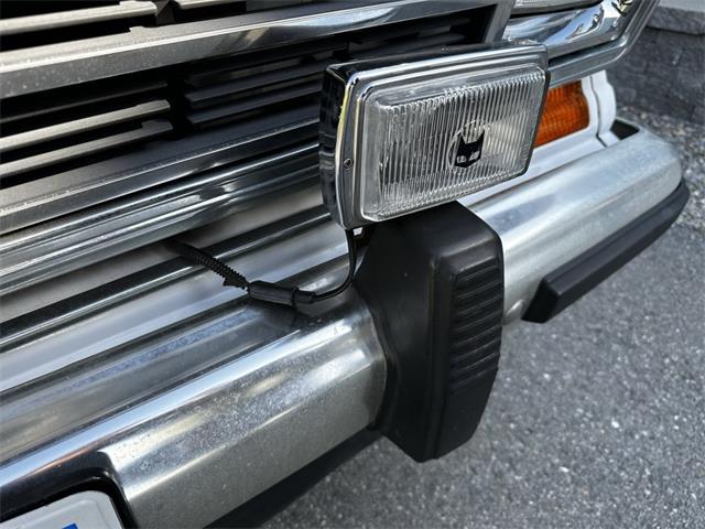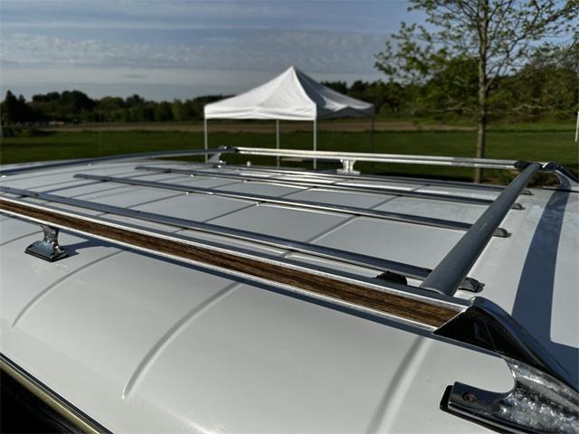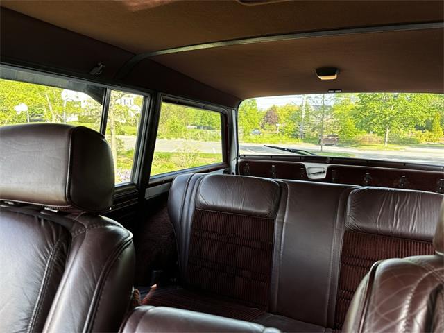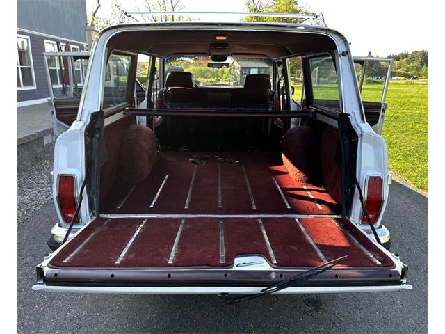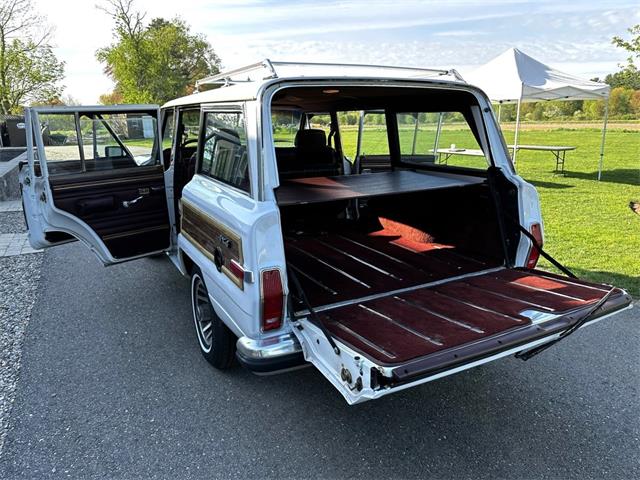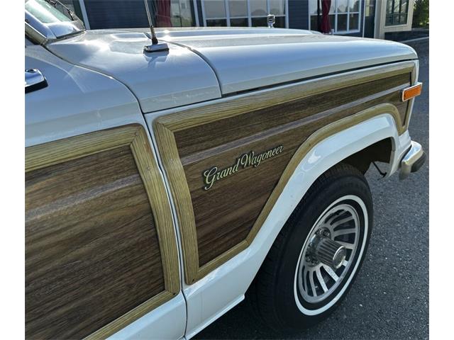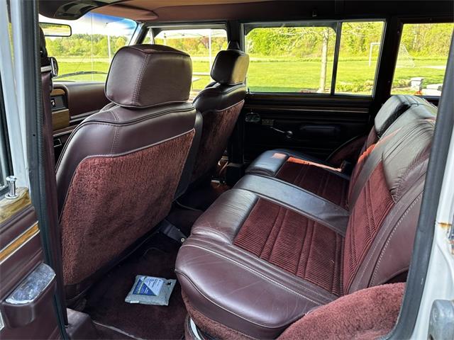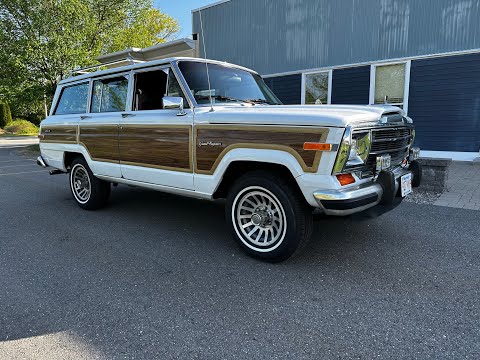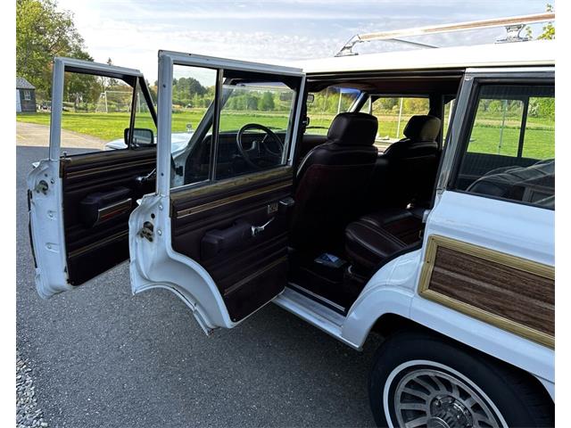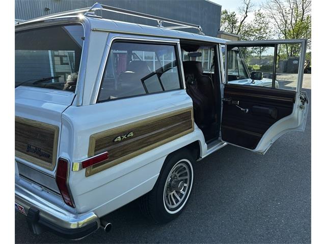 1990 Jeep Grand Wagoneer 4x4 with 66K original miles. From a small private collection in MA, this GW is a true V8 powered full size SUV in white with the iconic faux woodgrain accents running across the sides and rear, 15 inch aluminum wheels and chrome roof rack. Burgundy vinyl and cloth interior in excellent overall condition with minor wear only on the drivers seat as shown. Powered by the original 5.9-liter naturally aspirated V8 engine coupled to a three-speed automatic transmission and SelecTrac four-wheel drive. Many features including, factory fog lights, overhead console, air conditioning, power windows, power locks, power adjustable front seats, fold down rear seat, tow hitch, intact rear screen that works, after-market Kenwood stereo, aluminum bumper in excellent condition and much more. Clean undercarriage with solid frame with only typical surface rust evident. Full spare mounted underneath. Newer muffler and catalytic converter. All the badging and trim are intact and in great condition and all the chrome and aluminum bumpers are as well. This Grand Wagoneer runs, drives and handles excellent. Minor wear and scratches on veneer siding as shown with some some areas requiring re-glue.