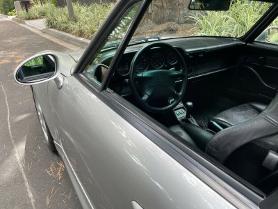 1998 Porsche 993 Carrera S Coupe. Last year of the air-cooled Porsches. 46,116 miles. Driven approximately 8.000 miles over this time period. Garaged. Always serviced at Beverly Hills Porsche, with the most recent full service performed less than 400 miles ago including all new rubber (Michelin Pilot Sport). Mechanically without fault. Cosmetically in exceptional shape, as can be seen from the photos. Paint is near perfect with only a few very small blemishes, wheels are very clean, except for a small amount of curb rash on one of them (see photo), dash is perfect and interior leather is in good shape but typical wear for a 23 year-old car. As far as I know, previous owner made a few modifications: exhaust tips, a front anti-roll bar, ported OEM sports seats (see options in photo) for racing harness (never installed) and integrated radar detector.
