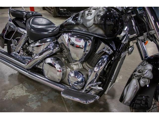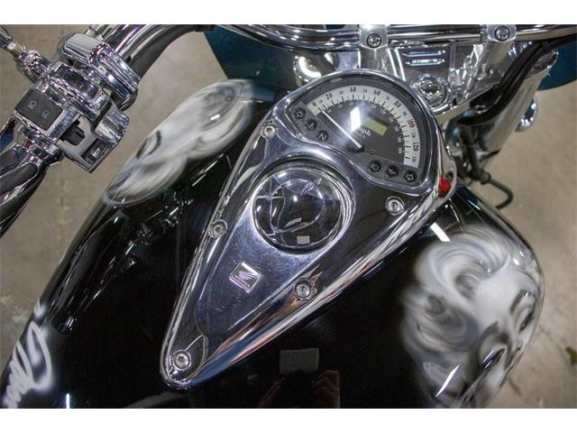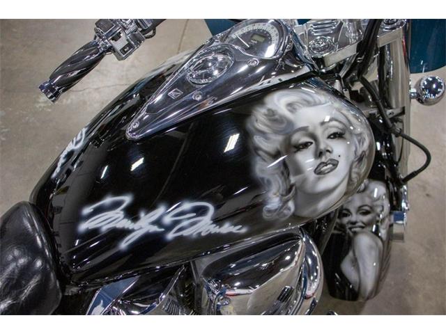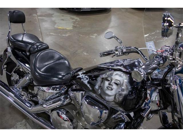 20003 Honda VTX1300 for your consideration. This bike comes with an airbrushed Mural of Marilyn Monroe on the gas tank and rear fender. In 2002 Honda made the VTX1300S available, as a 2003 model, with an all-new 1,312 cc (80.1 cu in) liquid-cooled V-twin engine in traditional cruiser bodywork, rolling on spoked wheels. It sold quickly, and by the close of 2003 sales totaled almost 12,000 units. In contrast to the VTX1800 line, VTX1300 bikes used standard unlinked brakes, with a single large front disk, 336mm in diameter. The rear brake was a 296mm disc. Although it was similar to 1800, 1300 was not the same engine with a smaller bore or shorter stroke, but a new design. The 1300 engine used a 38 mm constant velocity carburetor unlike the fuel-injected 1800. The single carb had a manual choke for cold starts and was heated by engine coolant to improve cold-weather operation. The configuration of the new powerplant was the same liquid-cooled overhead-cam 52-degree V-twin layout as its larger sibling, but the VTX1300 engine was designed around a single-pin crankshaft, unlike the 1800s dual-pin crank. As a result, the 1300 required dual two-axis primary counterbalancers to control engine vibration. The VTX1300 engine had a cable-operated clutch, instead of the hydraulic clutch of the VTX1800. The 1300 engine used an air injection system and catalytic converters, similar to the bigger engine, as well as a lean fuel-air mixture to control emissions. The VTX1300 line employed the same two-into-two exhaust system across the board, as opposed to the model-specific two-into-one system of the VTX1800C. In a road test on the Motorcycle USA website, editor Ken Hutchison observed that the VTX1300C had an "extra-muffled exhaust note that may be politically correct but it really detracts from the Big Twin experience potential buyers might be looking for." Nevertheless, Motorcyclist magazines Art Friedman opined that the VTX1300 "sound is classic V-twin", and that the bike had more responsive handling as well as a smoother drivetrain than its 1800cc lookalike.