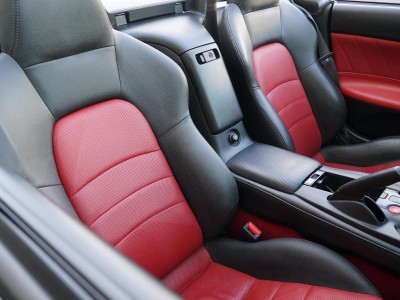 Black exterior paint with a black top. Paint and top in great shape, with minimal imperfections in the paint. The interior is red/black leather, also in very good shape, showing minimal wear. Vehicle comes with a fitted car cover, and the convertible boot cover for the top, when it is retracted, owners manuals, and 2 keys.
