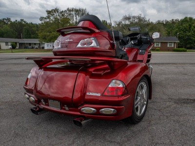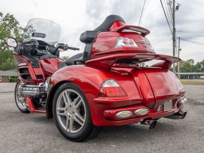 The lady owner purchased the bike brand new in 2010 and had it shipped to Hannigan Motorsport in Kentucky to get their trike conversion done. After the Goldwing was delivered back she could enjoy her new bike for around 380mls, before some health issues kept her from riding. This bike is equipped with ABS, heated seats and grips, radio, the 6 degree easy steer kit and everything else you could want on your bike. The Goldwing looks like it just rolled off the assembly line and received a major $5,000 service at Honda just recently with new tires, fluids, batterie, and everything else that was necessary. She runs and drives absolutely perfect and needs nothing except someone that finally puts some miles on her!