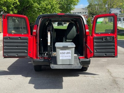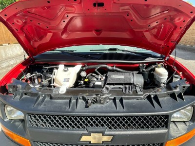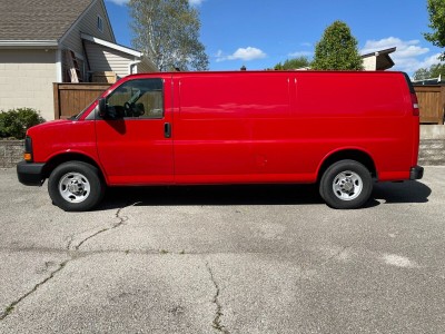 This Chevrolet Express 3500 is an extended length van in excellent condition. It has always been stored inside a garage. All miles on vehicle are highway miles. It has always serviced at Johnny Londoff Chevrolet. It has a Tommy Gate Co. Tommy Lift Interior Liftgate. The capacity of the liftgate is 650 lbs. The liftgate can be rotated out of the way for loading long items. The interior floor has a removable aluminum floor. The length of the floor has 4 equally spaced aircraft seat tracks that are used to mount tiedowns that can be moved to any location on the floor. This is useful in tying down oddly shaped items or different sized boxes. The van has a receiver style hitch capable of towing 10,000 lbs. There is probably 10,000 miles left on the tires. The interior has fully insulated walls with custom carpet panels on walls and ceiling.